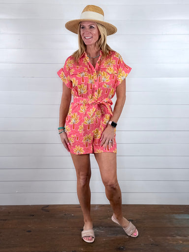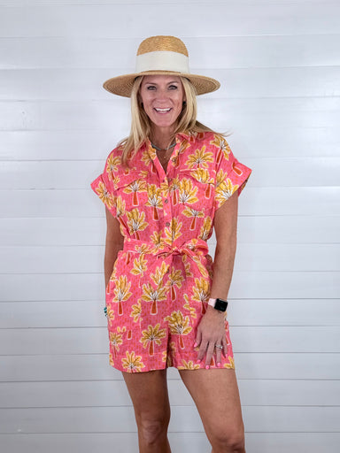 The Palm Tree Romper by Ivy Jane is your go-to for sunny days and tropical vibes. Featuring a pretty coral hue with a playful palm tree print, this...