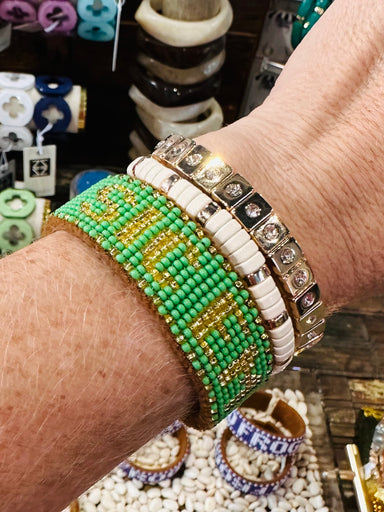 “GEAUX” enamel tile bracelets, sold separately or buy the duo Product Details + Care La Lumiere New York bracelets are hand-designed and use a...