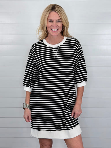 Effortless and easy, the Sunday Dress is your go-to for laid-back style with a classic twist. Featuring timeless black and white stripes, this shor...