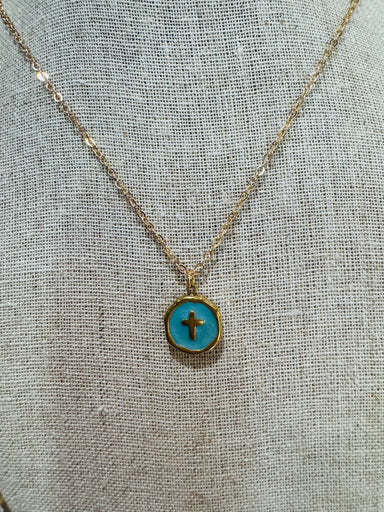 Gorgeous cross necklace on a 14k gold filled chain, 14k gold jumprings and 14k gold filled clasp. Choose from colors hot pink, orange, yellow, turq...