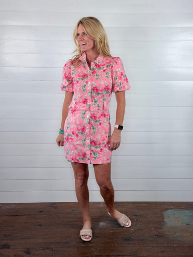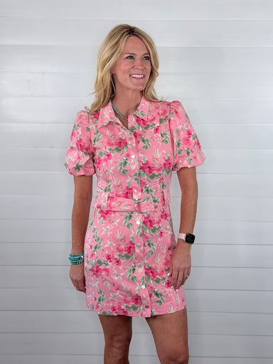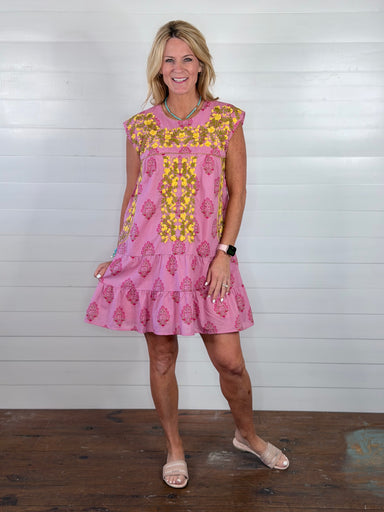 Feminine, fun, and full of detail, the Cynthia Dress by Sister Mary is a standout piece for any season. This short dress features a soft pink flora...