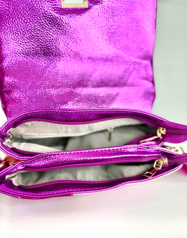 Stand out in style with this stunningly chic crossbody! With a metallic design and adjustable crossbody strap this will be the highlight to your l...
