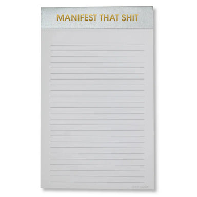 The Manifest That Shit Notepad is for dreamers, doers, and list-makers who like their stationery with a little attitude. With its sleek silver cove...