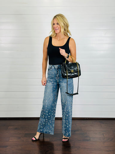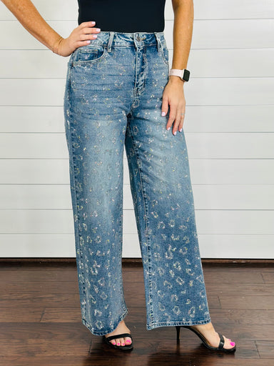 I mean...does denim get any more fabulous than this? The Glitz & Glam Cheetah jeans have become our new favorite! Super cute wide leg denim p...