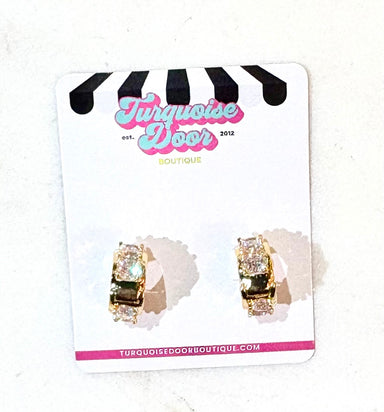 Add a touch of elegance to any outfit with these beautiful earrings. Square Cz detail Gold toned setting Pierced
