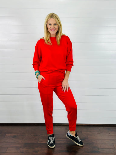 Meet your new off-duty favorite 💕 This ultra-soft scuba jogger set is the perfect mix of comfy and cool. The top features a flattering scoop neckli...