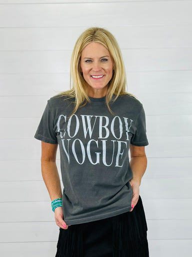 A casual graphic tee with effortless western style. Designed in a versatile charcoal grey, this tee features “Cowboy Vogue” printed on the front fo...