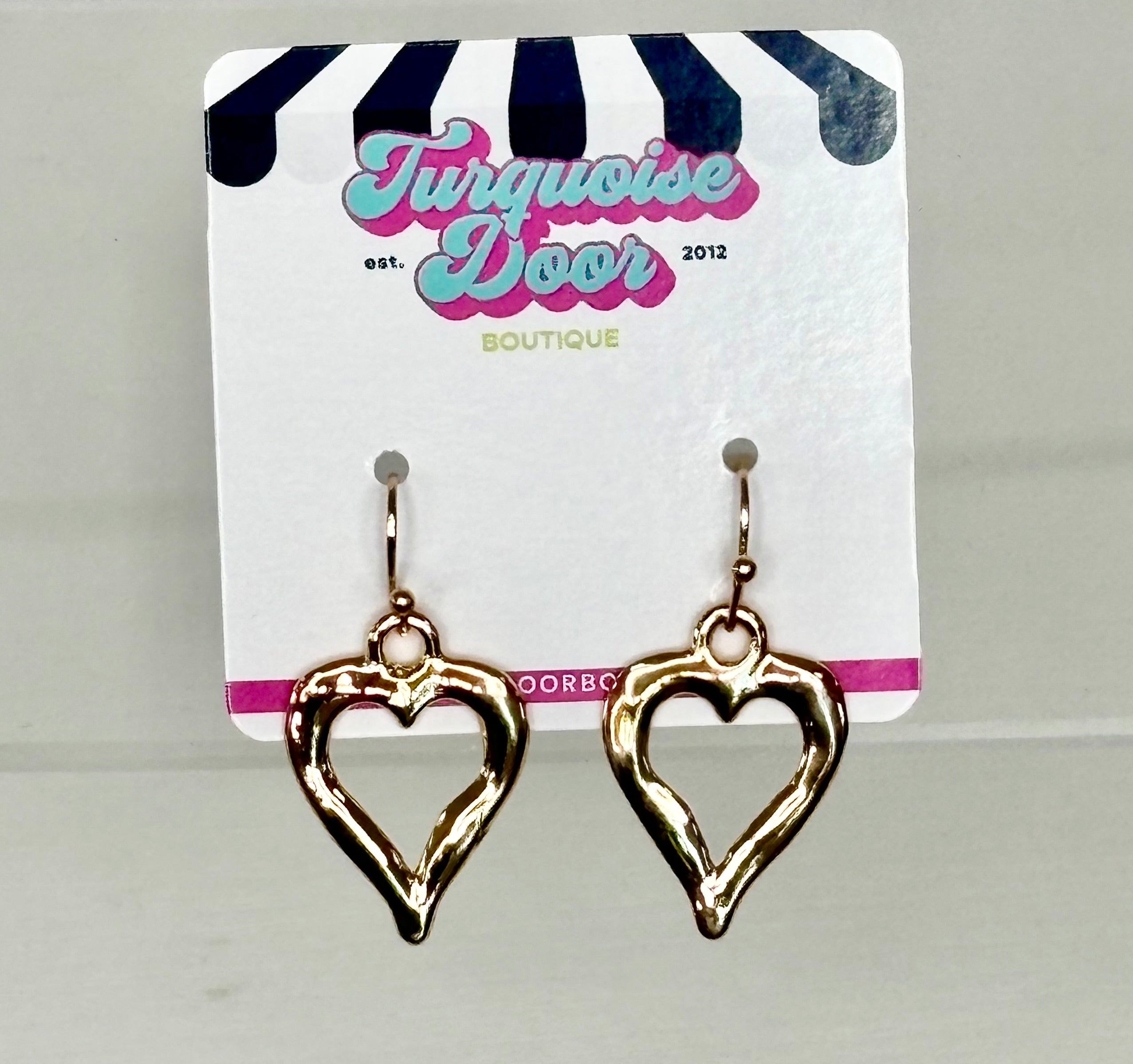 OPEN HEART EARRINGS-GOLD — Turquoise Door Tomball