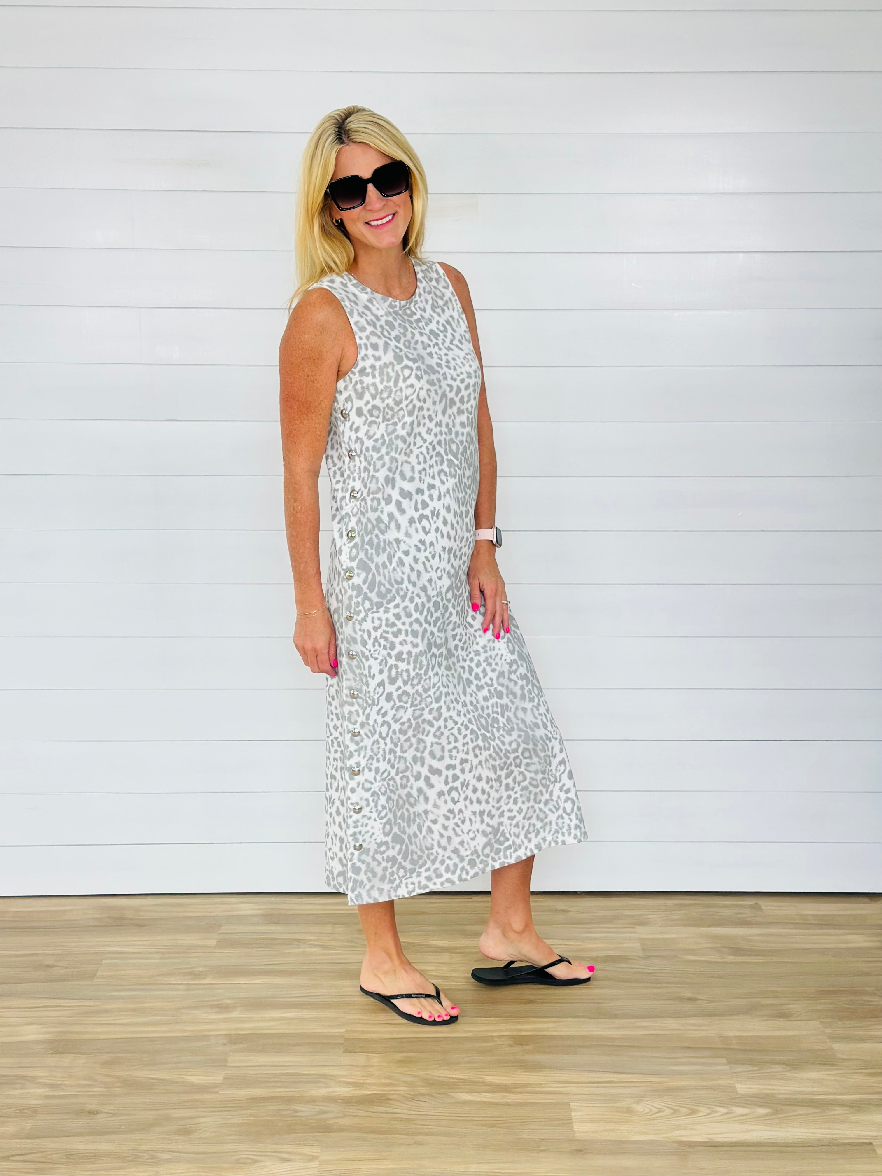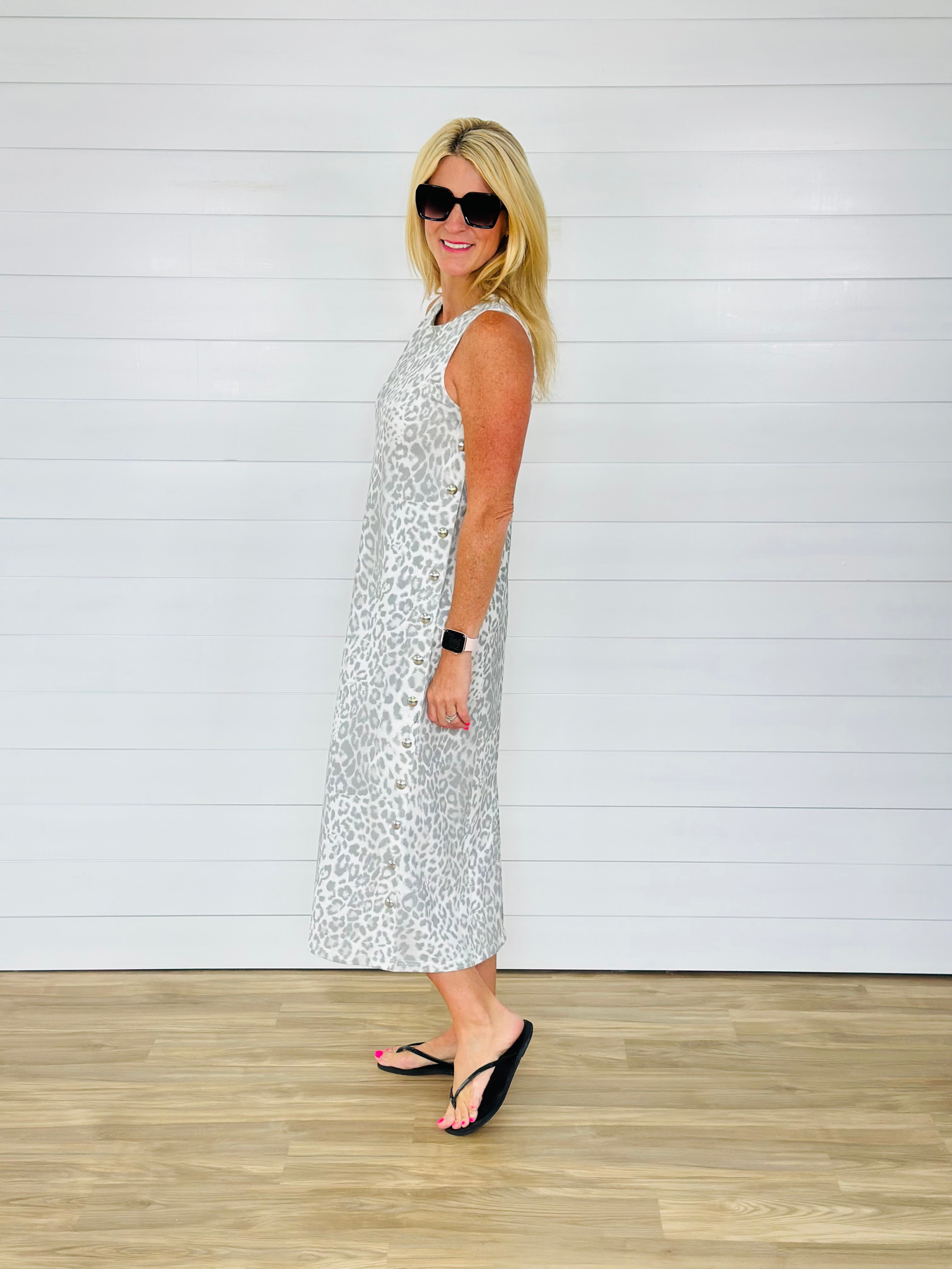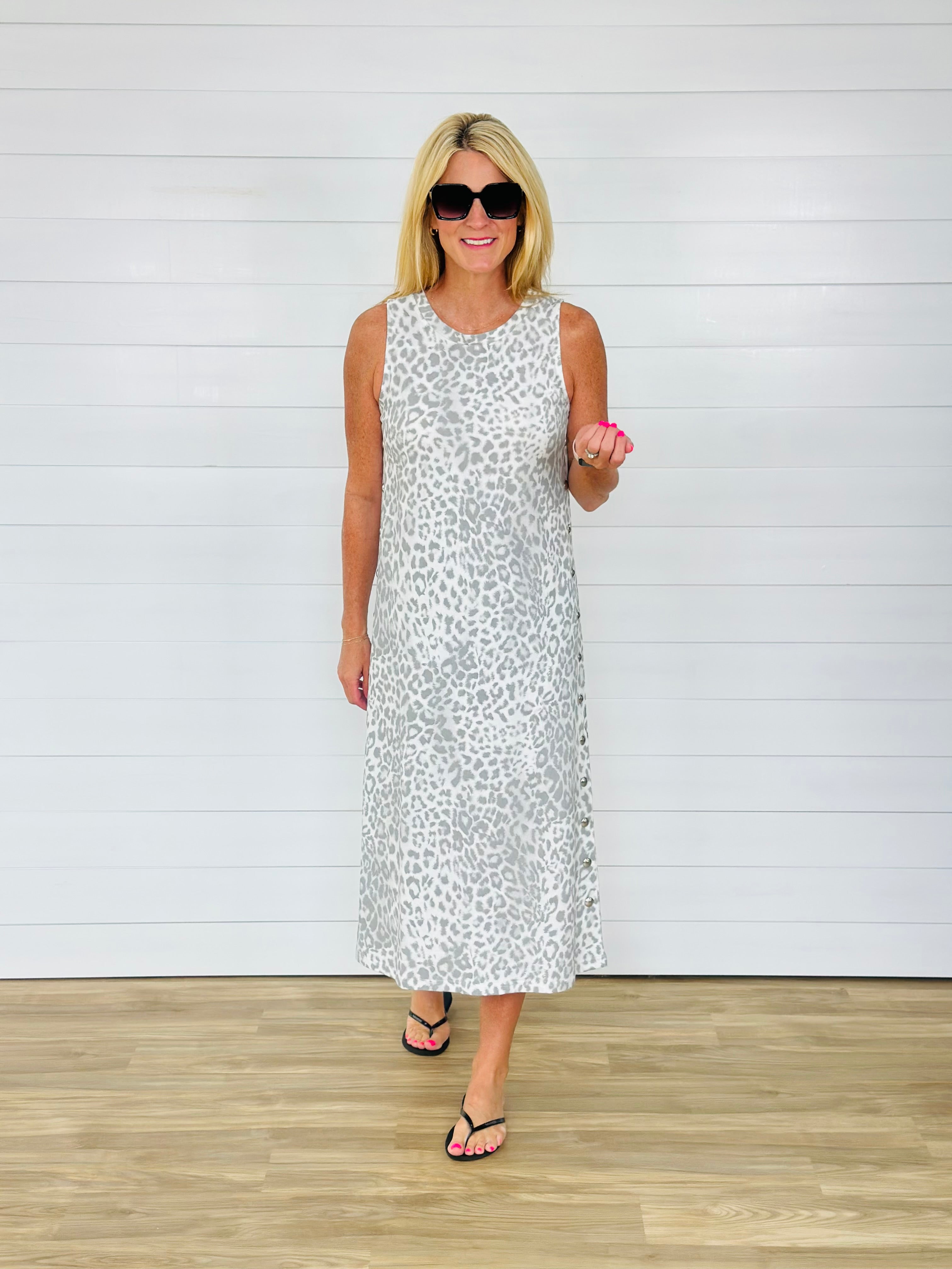 SIDE STUDDED LEOPARD DRESS-GREY — Turquoise Door Tomball